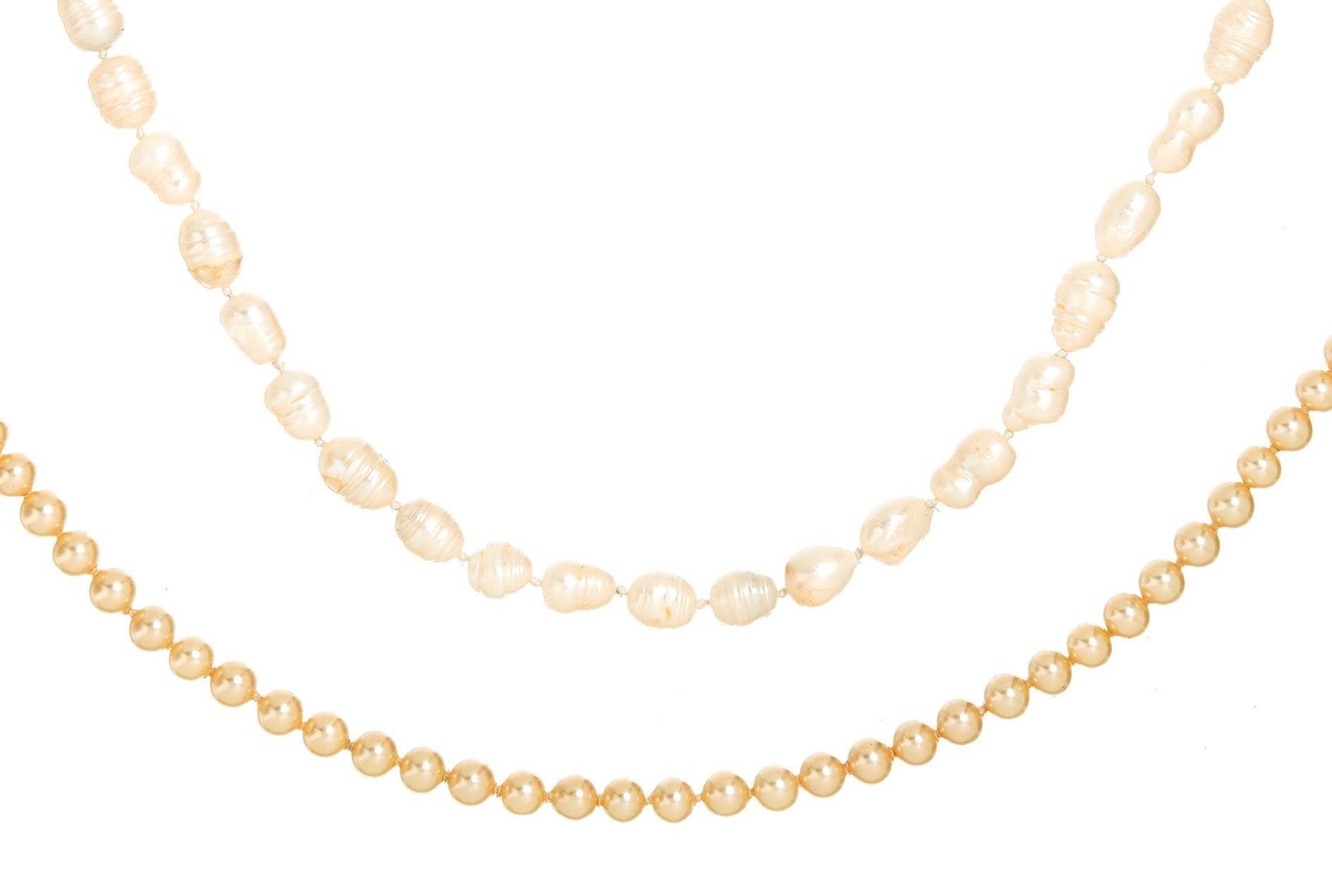Knots between pearls in a necklace