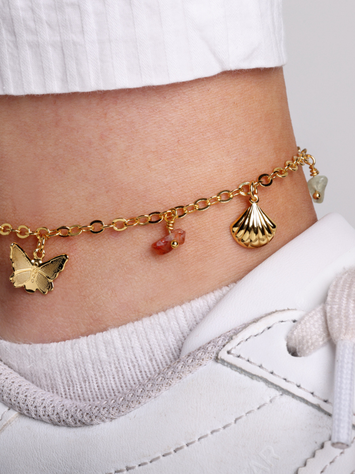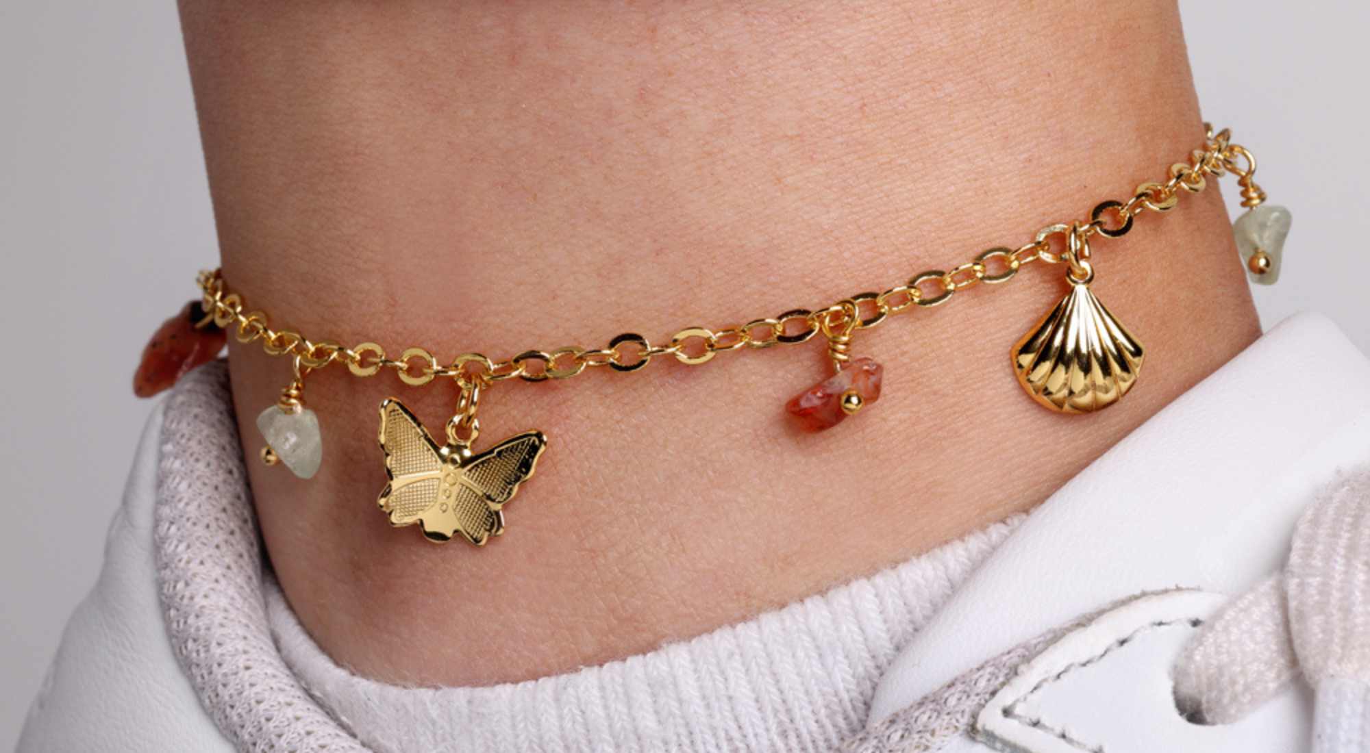 Teknikken kan bruges, når du har brug for at fastgøre både perler og vedhæng til feks ankekæden.